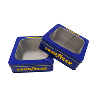 Stagno di metallo quadrato blu vuoto con finestra trasparente per uso alimentare finitura liscia opaca per confezioni di caramelle gommose